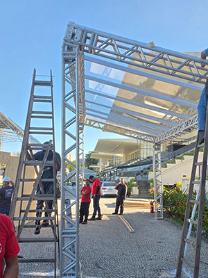 Veja algumas montagens que realizamos para eventos corporativos, residenciais e grandes produções — sempre com segurança, estética e eficiência.
