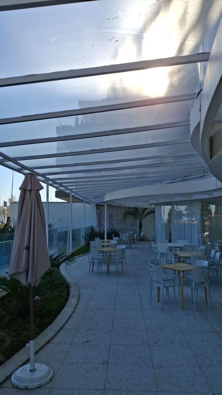 Coberturas impermeáveis, calhas, fechamentos laterais e proteção contra vento para manter conforto e segurança em qualquer condição.